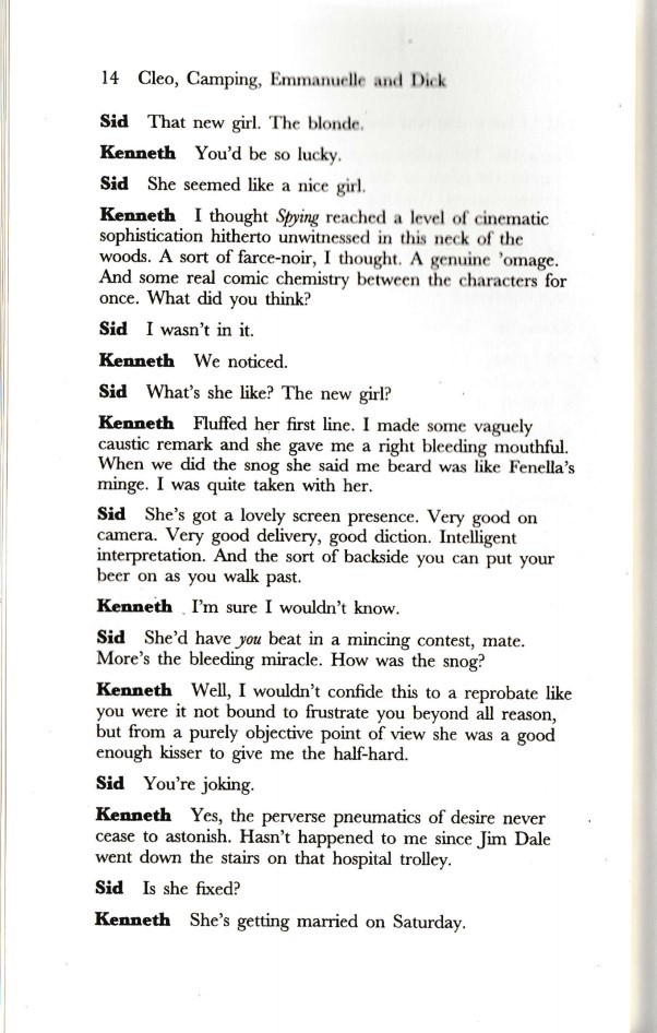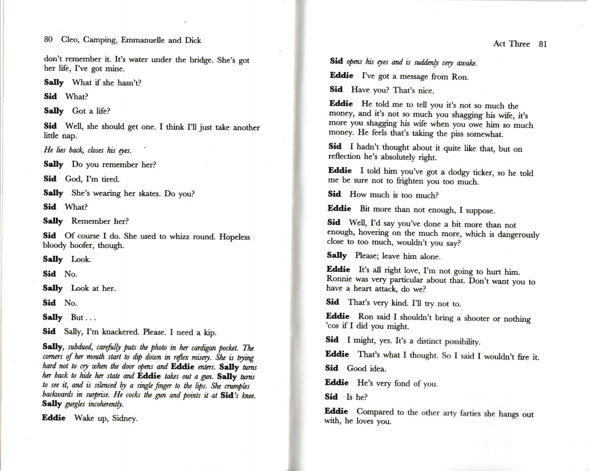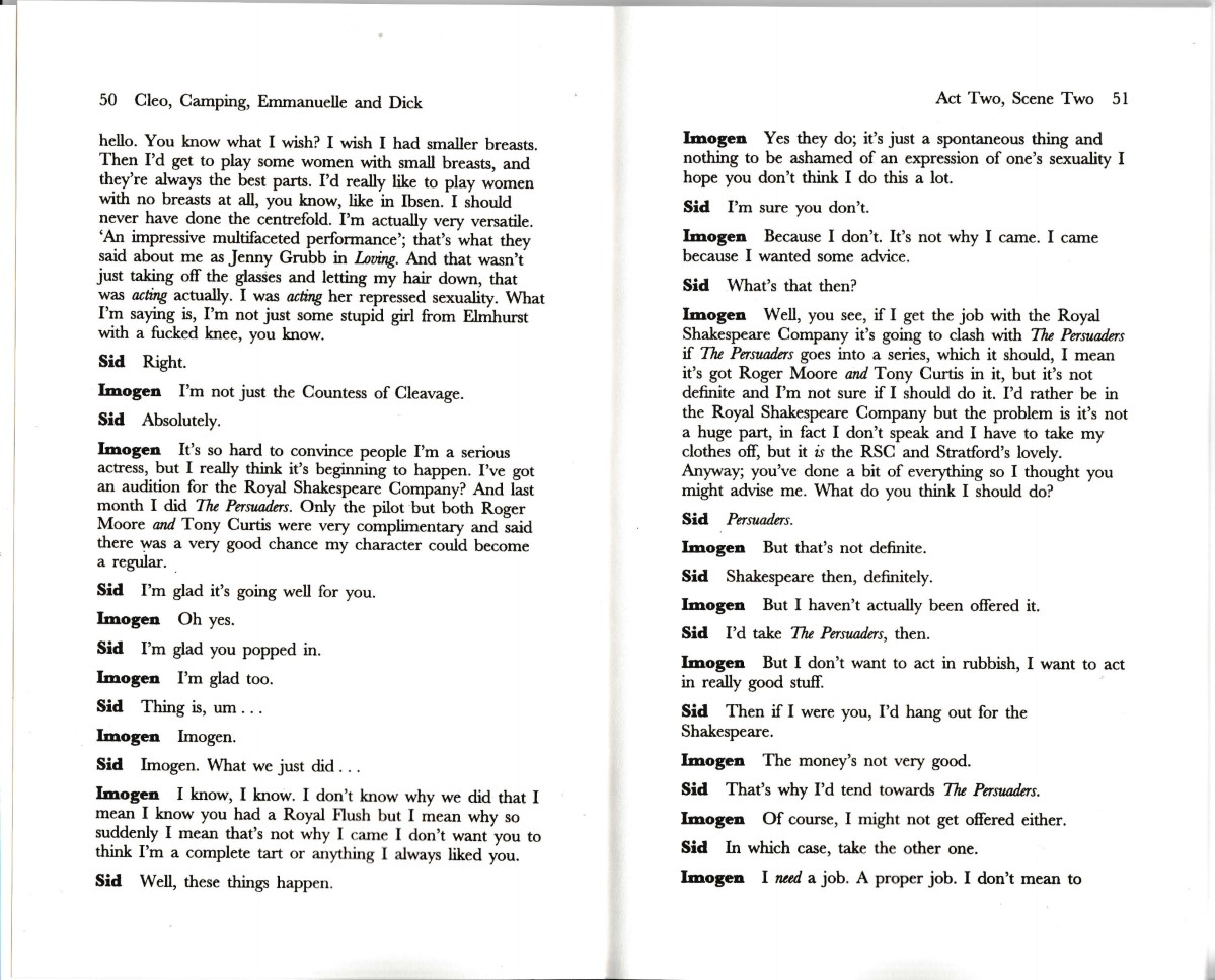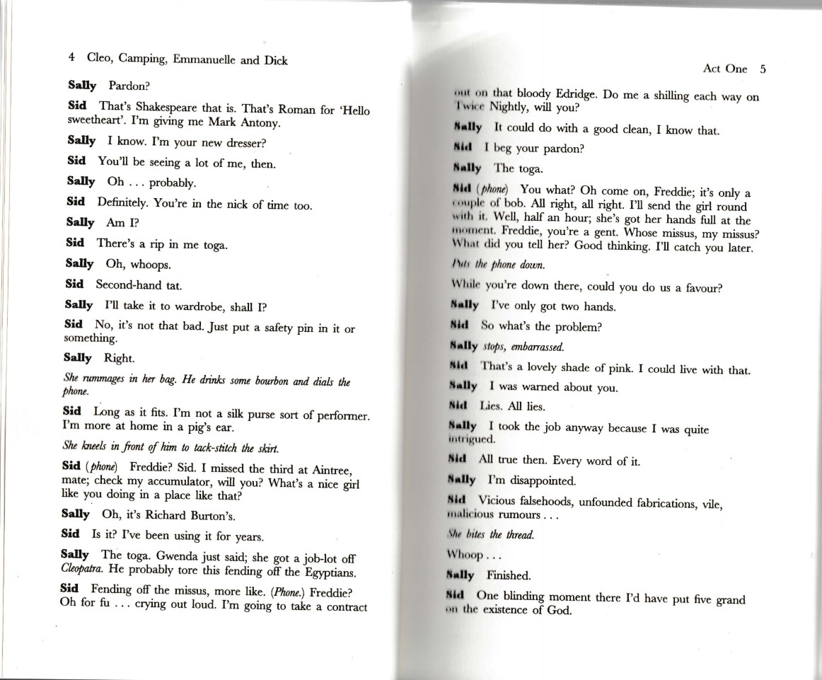 Cleo, Camping, Emmanuelle and Dick is a 1998 play written by the English dramatist Terry Johnson, who also directed the original production at the National Theatre.