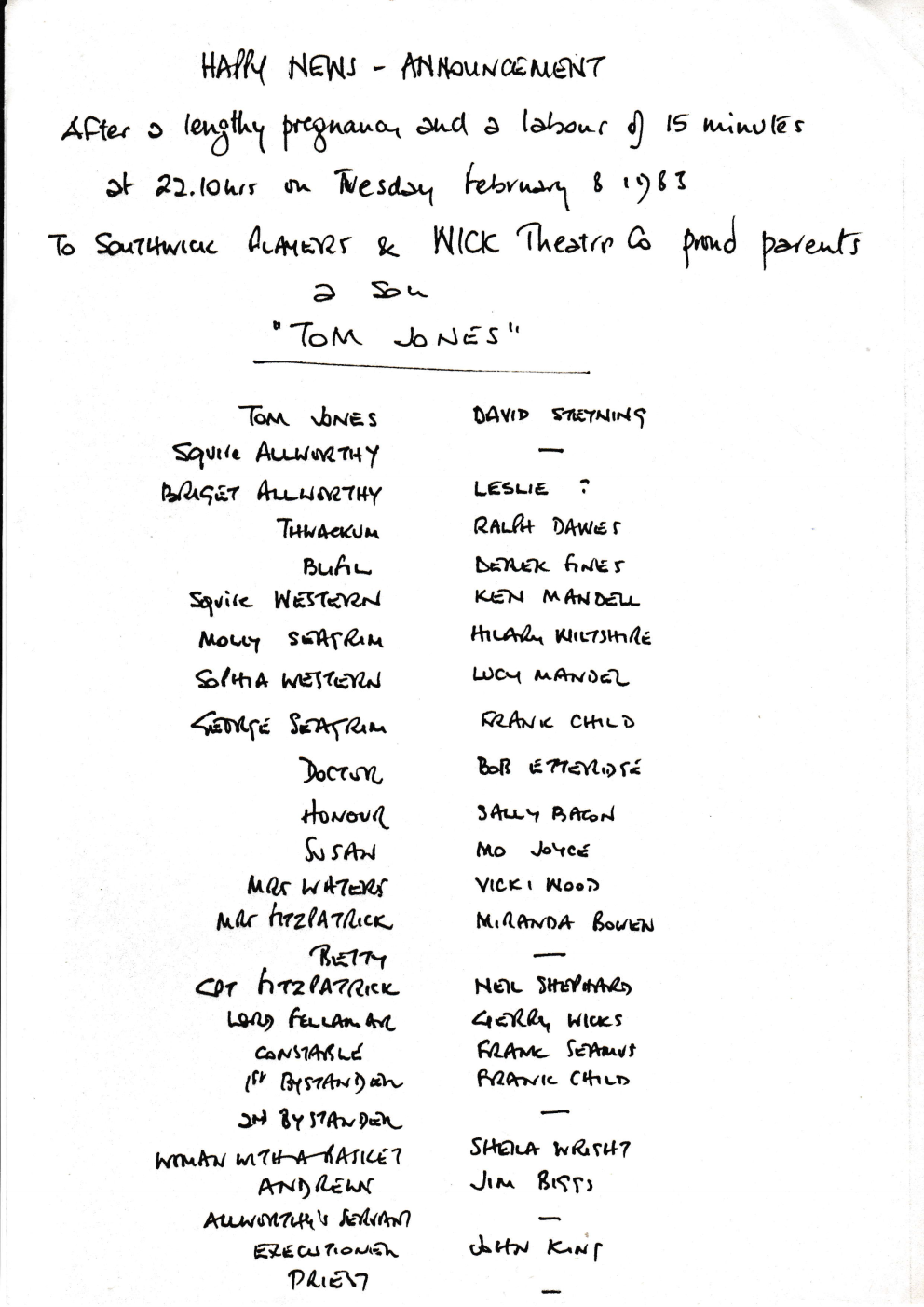 Production : Tom Jones